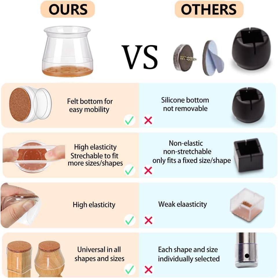 Forget sticky pads or constant replacements. These covers stretch right over the ends of your chair or table legs in seconds. No glue. No nails. No damage. Just pure convenience.